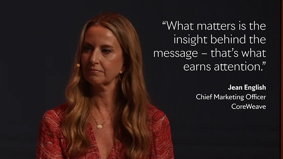 And how do you build your brand? Jean English, Chief Marketing Officer of CoreWeave, advised B2B brands to ask themselves: “What do customers love about you?” She urged brands to tell their own stories “before someone else tells it for you” – and get the whole leadership team behind it.